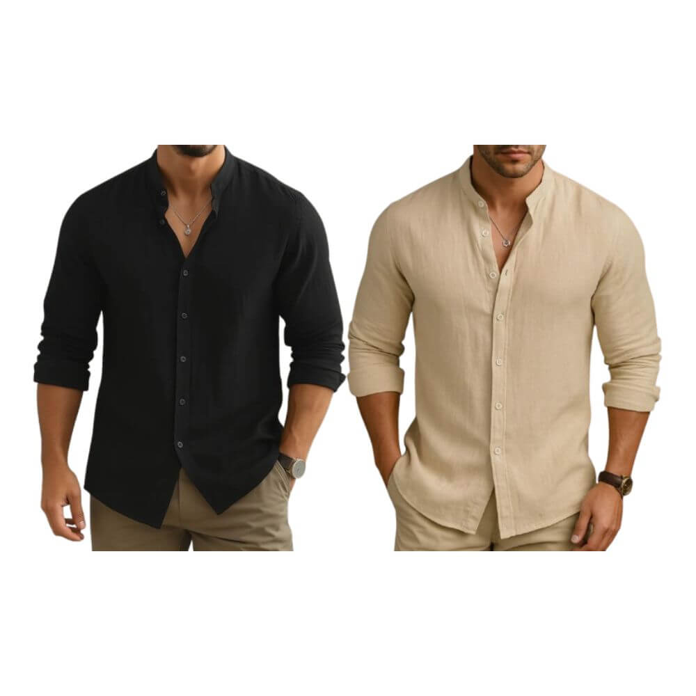 O toque suave e respirável do linho combinado ao algodão garante bem-estar durante todo o dia. A gola padre clássica adiciona personalidade e refinamento ao design, criando um equilíbrio perfeito entre tradição e estilo contemporâneo.