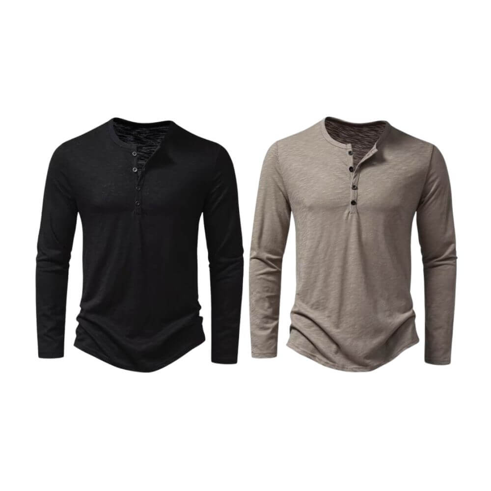 Estilo é com a Camiseta Masculina Manga Longa Gola Henley Itajaí
